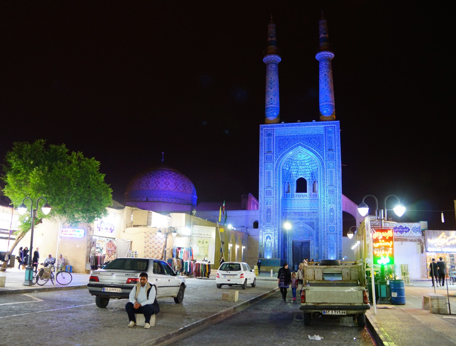 Wir lassen unsere Räder in Esfahan stehen und fahren ausnahmsweise mal mit dem Bus. Es geht weiter südlich nach Yazd. Die Stadt liegt am Rande der Wüste und ihre Umgebung ist relativ dünn besiedelt. Als wir aus dem Bus steigen, erschlägt uns zunächst die Affenhitze und wir ahnen, was uns in den kommenden Wochen erwarten wird. Yazd ist ein eher entspanntes Städtchen und nicht ganz so quirlig wie Esfahan. Hier wird ein Gang zurückgelegt und selbst am Abend, wenn alles auf den Beinen ist, geht es eher ruhig zur Sache. Die Altstadt besteht aus vielen kleinen Gassen, es gibt eine Menge Torbögen und Windtürme, die in den Häusern für Frischluft sorgen. Auf Grund der Wärme erscheint uns die Stadt ab Mittag wie ausgestorben. Wir genießen diese Ruhe, schauen uns die Sehenswürdigkeiten an oder faulenzen einfach nur herum.
