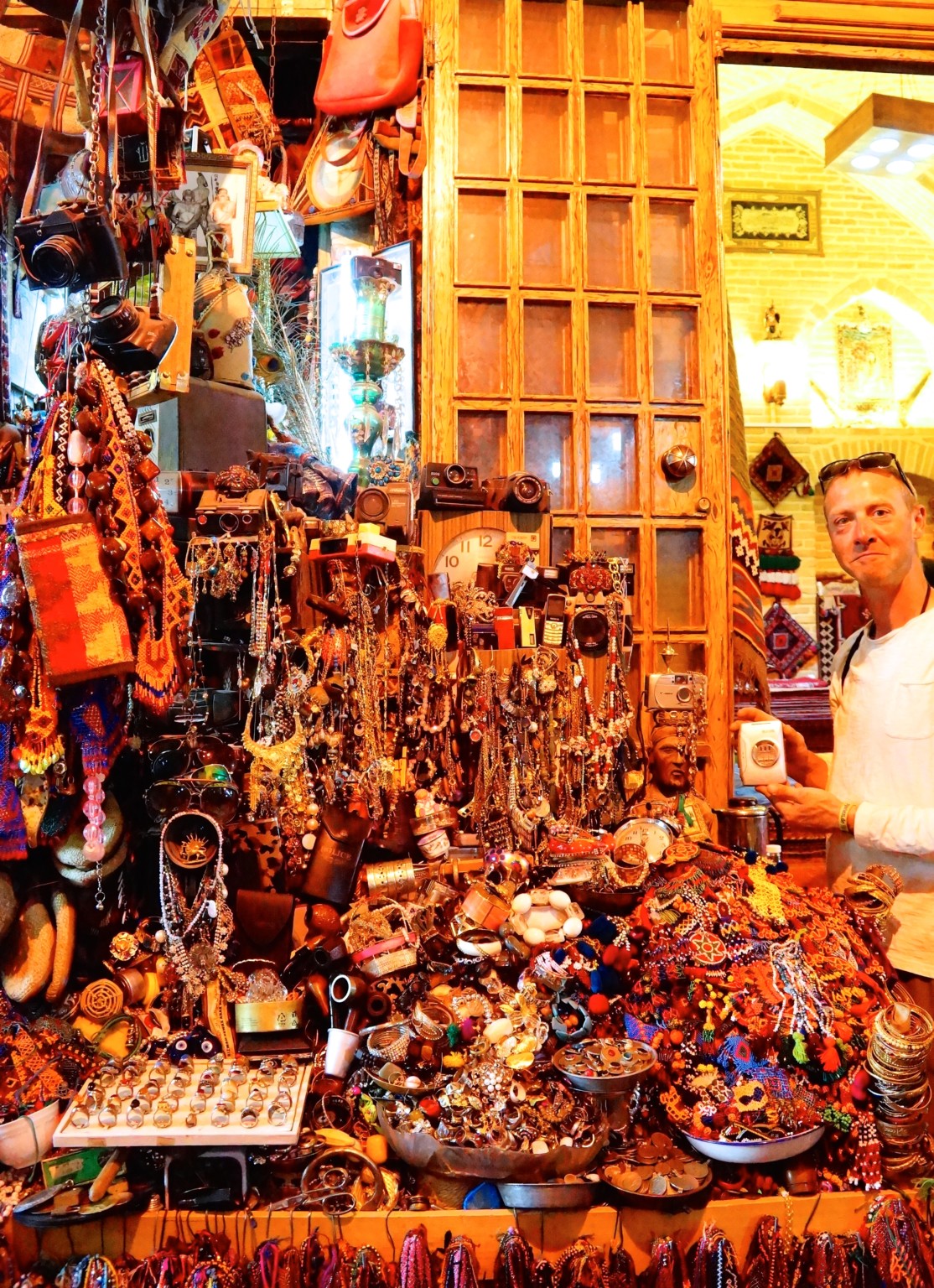 Nicht nur die Sonne, sondern auch reger Verkehr bringen uns zum Schwitzen. Gegen Mittag zeigt unser Tacho bereits um die 50 °C. Hinzu kommt ein enormer Lärmpegel der vorbei donnernden LKW´s, ohne Mucke läuft da gar nix. Wir sind in Shiraz angekommen, einer Stadt zwischen Tradition und Moderne und wir befinden uns nun mitten in Persien. Hier erlebt man den Iran, wie er im Buche steht. Von Schrauberbuden, Goldgeschäften, Kupfer-, Teppich – und Textilläden über Gewürzshops und Fruchteisläden, gibt es hier wirklich alles. Die Händler kutschen ihren Ware mit Sackkarren durch die unzähligen Basare, die alle miteinander verknüpft sind. Das ganze Geflecht ist so groß, dass man sich darin verlaufen kann. Ein kunterbuntes und reges Treiben was hier herrscht, einfach nur grandios.