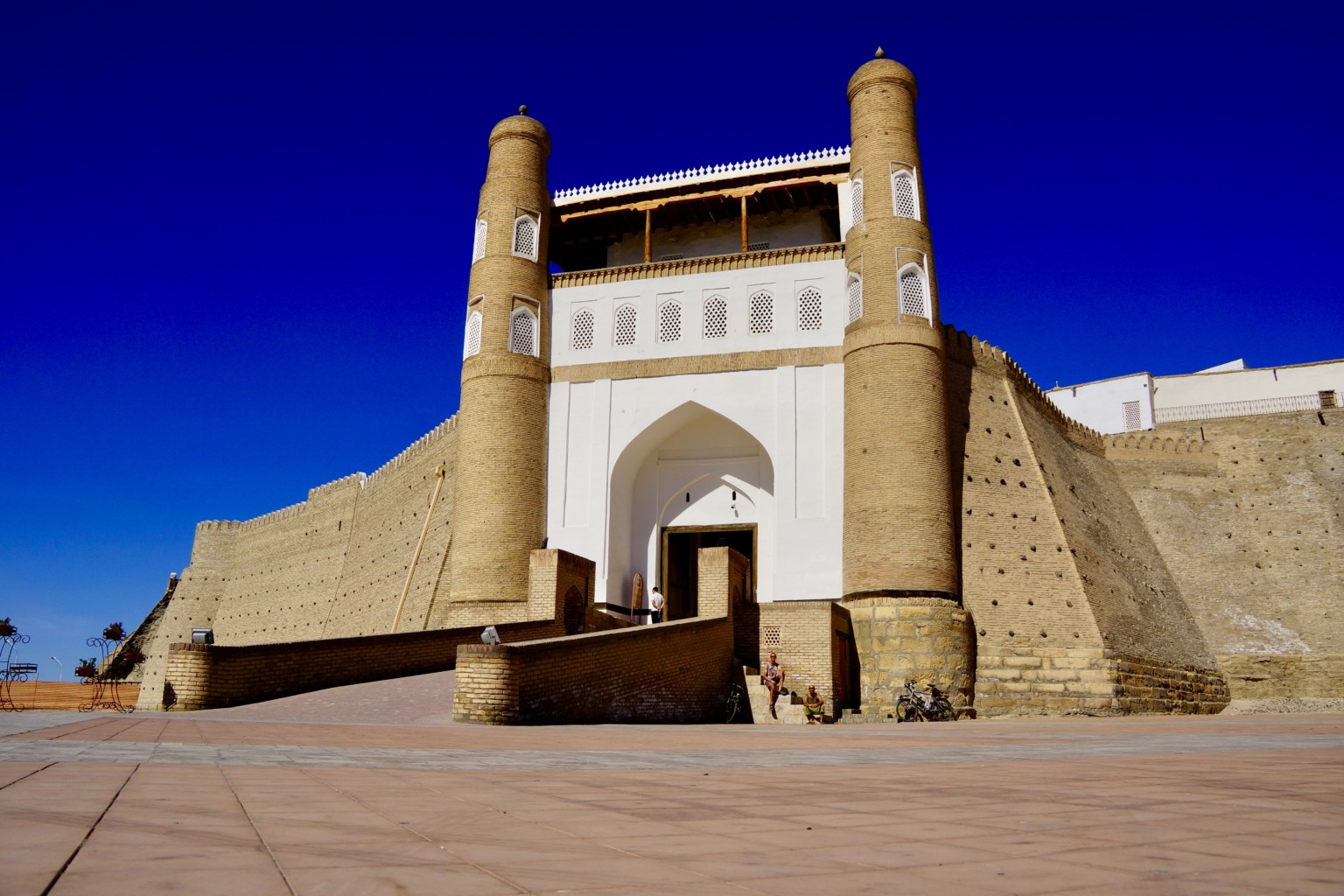 Wir nähern uns immer mehr Buchara und als wir im Zentrum ankommen, sind wir erstaunt, wie wenig Touristen es hier hat. Die Saison ist scheinbar vorbei und tagsüber liegt die Stadt im Dornröschenschlaf. Die Innenstadt gehört zum Weltkulturerbe und ein schönes Bauwerk reiht sich ans andere. Zwischendrin verkaufen die Händler Keramikwaren, Teppiche, traditionell buntgefärbte Stoffe und mehr. Von den Festungsmauern der Ark haben wir einen genialen Blick auf die historische Altstadt und die Moschee Kalan mit ihren Minarett. Wie im Iran beginnt auch hier erst am Abend das volle Leben und die Menschen tummeln sich auf den Plätzen oder in den Parks der Stadt. Es herrscht eine entspannte Atmosphäre, hier fühlen wir uns auf Anhieb pudelwohl und machen für einige Tage Pause.