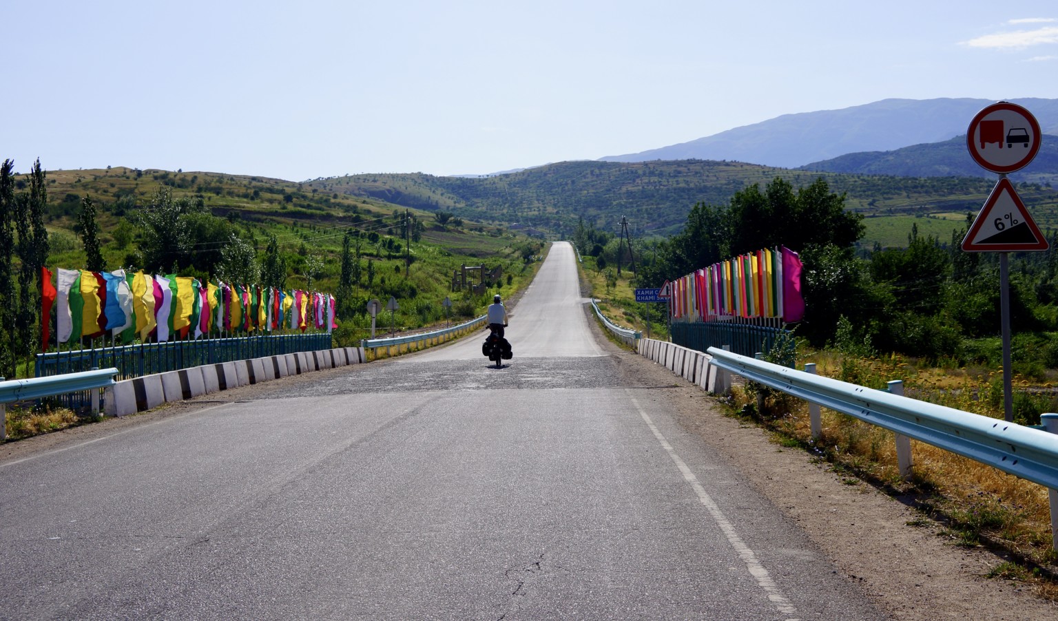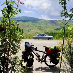 Nach einer Verschnaufpause in Duschanbe, rattern wir gen Osten. Schon bald hinter der Stadt werden die Straßen zunehmend schlechter und die Anstiege heftiger. Bei Darband biegen wir Richtung Chorugh ab. Wir überqueren eine Brücke und es scheint so, als wenn hier eine riesige Flutwelle durchgerollt und die Diese gerade noch so standgeblieben ist. Für uns ist sie das Tor in die Region Berg Badachschan. Von nun an ist das Radfahren richtig knackig und wird mehr und mehr zum Kraftakt. Wir fahren in ein großes Tal, welches zunehmend zu einer engen Schlucht wird. Von Asphalt ist hier keine Rede mehr. Die Straße ist eine mit Schlaglöchern versehene Schotterpiste. Statt normalerweise 90 km, radeln wir „nur“ noch um die 50km am Tag. Oft schalten wir dabei in den ersten Gang, denn es hat recht steile Pisten, die immer wieder rauf und runtergehen.