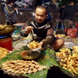 An einem Stand bekommen wir ein Faltblatt in die Hand gedrückt. Es ist eine Schnitzeljagd. Wir müssen verschiedene Stationen anlaufen und bekommen dort jeweils einen Stempel. Den Spaß lassen wir uns natürlich nicht entgehen. Also schlendern wir stundenlang über das Gelände, futtern was das Zeug hält und bekommen nach und nach so unsere Stempel. Überfluss pur – wir genießen es in vollen Zügen. Gleichzeitig ist das Ganze auch eine Landwirtschaftsschau. Alle möglichen Tiere und Pflanzen werden gezeigt und zum Kauf angeboten. Als wir alle Stempel zusammen haben (es sind 15), bekommen wir einen handgemachten und handbemalten Origami- Fisch aus Palmblättern. Wir haben auch schon eine Idee, wie dieser sicher nach Hause kommt, denn das Ding muss definitiv mit. Nach den Verlusten in Indien, statten wir dem örtlichen Fahrradladen einen Besuch ab. Er ist erstaunlich gut ausgerüstet und so erstehen wir neben einem Radcomputer auch gleich noch ein Satz neue Radtaschen für Silvio. Alles nicht billig, aber es nützt nichts.