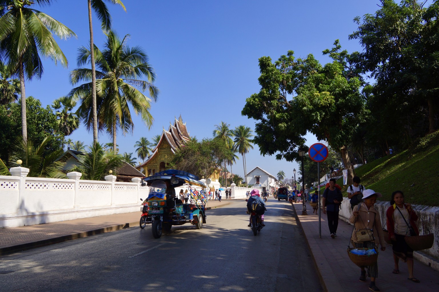 In Luang Prabang schmeißt uns die Schiffsbesatzung von Bord, denn hier ist Endstation. Das auf einer Halbinsel gelegene Vorzeigeörtchen hat irgendwie Flair. Zwar tummeln sich hier viele Rucksackreisende herum, aber dennoch geht es recht gelassen und entspannt zu. Viele restaurierte Kolonialbauten zieren die Straßen. Es gibt dutzende Tempel und Cafés inmitten einer grünen Oase. Neben kitschigen Souvenirständen gibt es auch einen Nachtmarkt, den wir mal wieder für uns entdeckt haben. Jeden Abend treffen wir uns zur gleichen Zeit am gleichen Ort mit zwei Berlinern zum Bauch vollschlagen. Die Laoten lieben den Holzkohlegrill, und so räuchert und duftet es an jeder Ecke. Es gibt Fleischspieße aller Art, Grillhähnchen, Bratwürstchen, Maiskolben, Fisch und so holen wir das nach, was wir in den Sommermonaten so oft vermisst haben. An unserem freien Tag schnappen wir uns die Räder und machen einen Badeausflug in die nähere Umgebung. Unser Ziel sind die Tad Sae Wasserfälle (Kaskaden), die sich mitten im Dschungel befinden. Nach einer kurzen Flussüberquerung laufen wir auf einem Pfad an vielen glasklar türkisgrünen Wasserbecken entlang. Wir haben Glück, denn nur wenige Besucher sind da und somit können wir dieses kleine Tropical Island recht entspannt genießen.