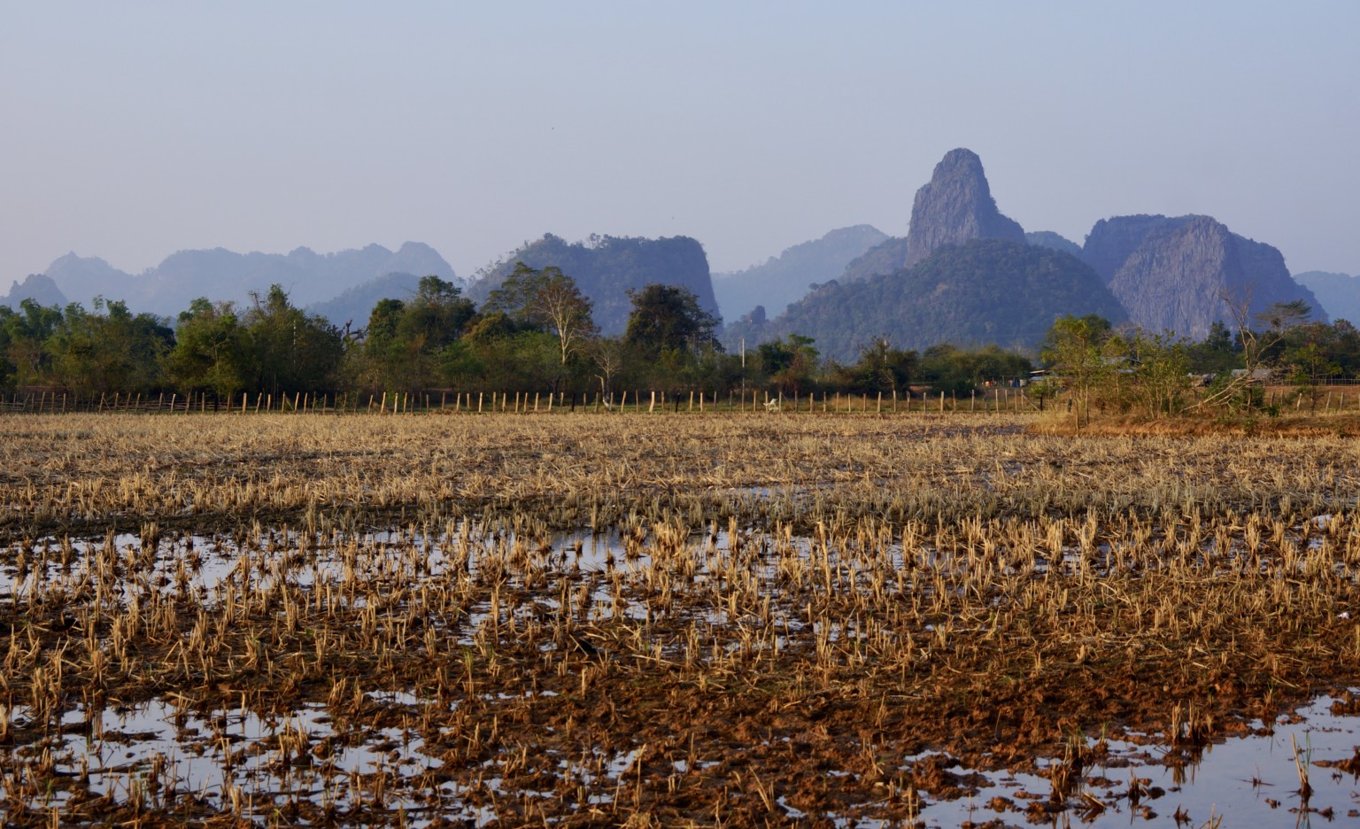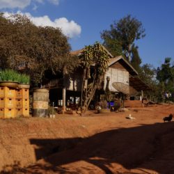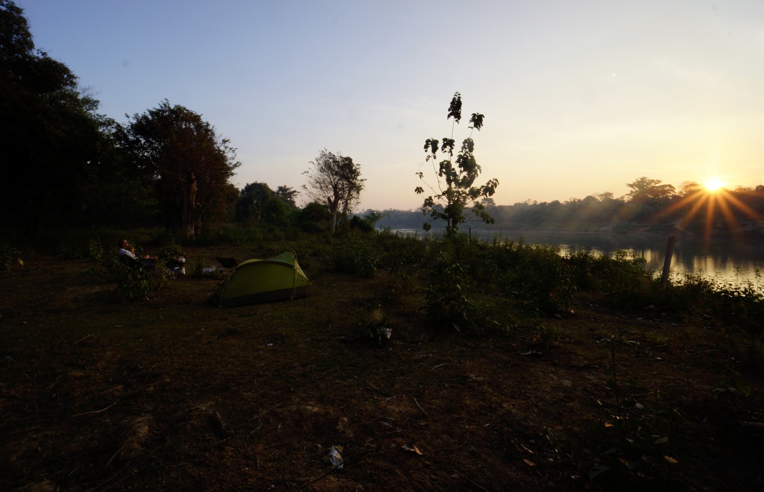 Die darauffolgenden Tage sind landschaftlich gesehen eher eintönig, fast schon langweilig. Die Felder sind kaum bewirtschaftet, vieles ist ausgetrocknet und lassen uns eher an eine Dürreperiode erinnern. Zusätzlich werden wir von einer Pannenserie begleitet, uns jagt ein Platten nach dem Anderen. Wir fahren zum Teil immer noch die ersten Reifen und Schläuche, die mittlerweile über 17000 km auf dem Buckel haben und mit etlichen Flicken repariert wurden. Das Mitzählen unserer Plattreifen haben wir bereits aufgegeben. In Beng biegen wir dann ab auf die 15 Richtung Salavan und es zeigt sich ein erster Lichtblick. Es gibt wieder einige Flüsse und gelegentlich kommen ein paar grüne Fleckchen Erde zum Vorschein. Auch unser Zelt wird wieder mehr zu unserem Heim, denn die Unterkünfte sind rar gesät und die Nächte angenehm kühl. Was die Ernährung angeht, gestaltet sich diese zur Zeit recht einseitig. Morgens muss ein Babberschmatz herhalten (Grießbrei) mit Banane oder Apfel verfeinert, Mittags ein Nudelsüppchen am Straßenrand oder einfach nur Kekse und Obst, während wir am Abend gelegentlich versuchen uns aus einfachsten Dingen etwas zu kochen. Hin und wieder schwirren einem die Gedanken durch den Kopf, was wohl auf den Tisch kommt, wenn wir wieder in der Heimat sind.