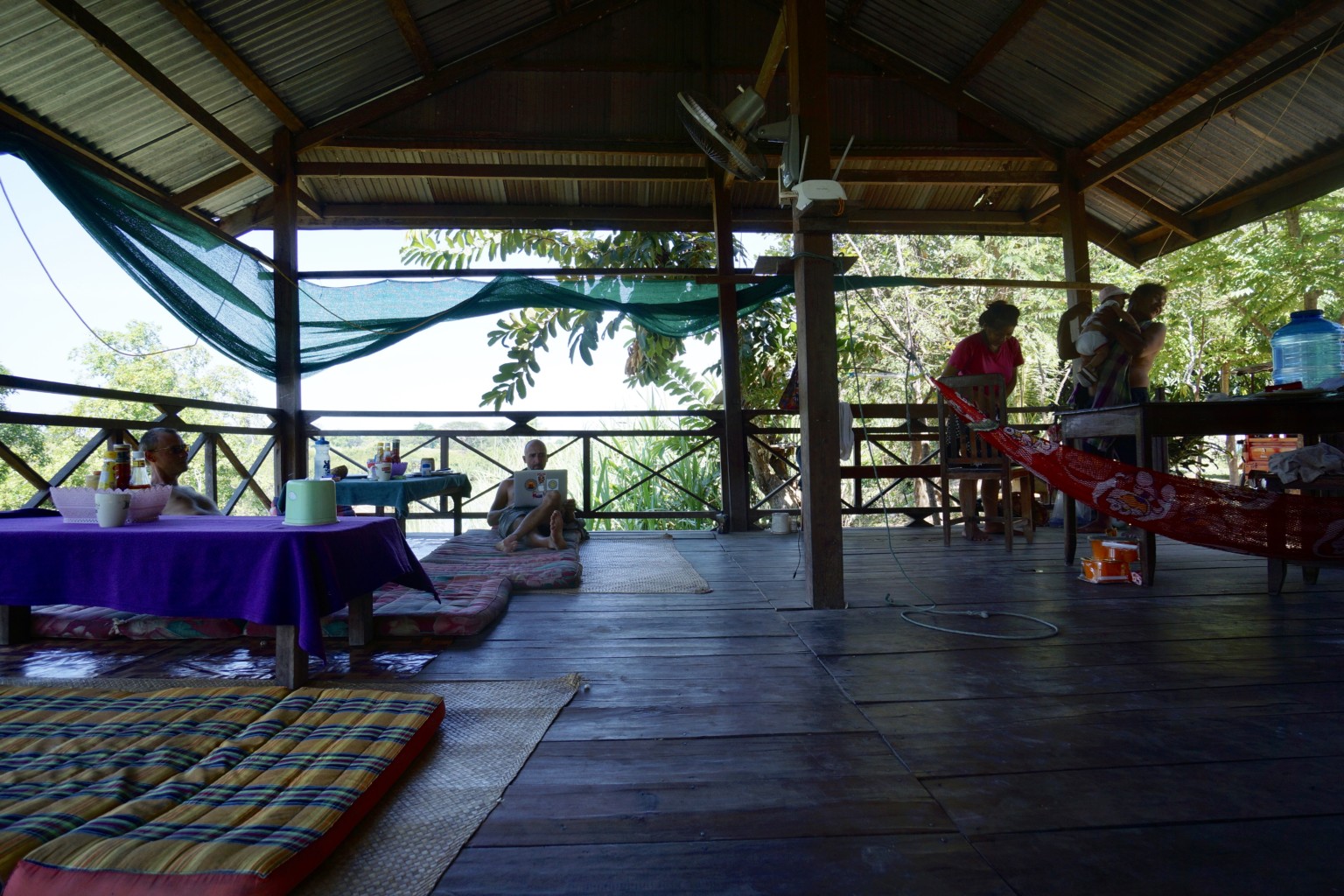 Leider finden wir hier keinem Unterschlupf und setzten kurz vor Dunkelheit auf die Nachbarinsel Don Det über. Wir haben Glück, denn es ist bereits dunkel, als wir abseits vom Schuss ein am Fluss liegendes kleines Home Stay finden. Hier geht es mehr als nur entspannt zu. Die Familie lebt auf der Veranda, welche auch gleichzeitig das „Restaurant“ ist. Liebevoll kümmert Sie sich um ihre Gäste, kocht saugutes und günstiges Essen, während wir auf der Hängematte oder Veranda verweilen und einfach nur dem Nichtstun frönen. Nicht nur nebenan, sondern auch auf der Nachbarinsel Don Khon gibt es schöne Badestellen, wo wir uns vom Fluss einfach nur treiben lassen können. Gegen Abend machen die vielen Frösche und Grillen auf sich aufmerksam und geben ein lautloses Konzert von sich, die die Inseln zu einem wahren Idyll machen. Bis zu unserem vorletzten Tag des Visumsablaufes bleiben wir hier und genießen ein letztes Mal die laotische Gelassenheit, von der wir uns ein großes Stück mit nach Hause nehmen.