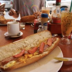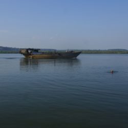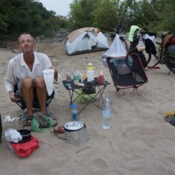 Den freien Tag wollen wir am anderen Flussufer verbringen und baden gehen. Gesagt, getan. Nach dem Ausschlafen und Frühstücken, also am frühen Nachmittag, setzen wir über und nehmen zwei Strandbuden mit Hängematten in Beschlag. Vorher besorgen wir uns auf dem Markt Fisch, Reis, Gemüse und Getränke. Doch es dauert nicht lange und die Schüler des Ortes wollen diesem Vergnügen ebenfalls frönen. Jede Gruppe hat eine große Musikbox dabei und dröhnt uns voll. Die Lautsprecher sind der Renner, in fast jedem Haus scheint es einen zu geben. Sie schleppen kistenweise Bier an, rauchen und machen Party. Wir staunen nicht schlecht, zumal die meisten höchsten dreizehn oder vierzehn Jahre alt sind. Ja ja, die Jugend. Sie gehen auch komplett angezogen ins Wasser. Nachdem einer der Jungs seinen Müll im Fluss entsorgt hat, versucht Dominik die Problematik zu erklären. Doch nicht nur bei den Schülern, sondern allen im Land fehlt es an Verständnis dafür. Sie schauen uns an und wissen nicht, was wir von ihnen wollen. Überall liegen Plastiktüten, Dosen und Verpackungen herum. Sogar im Restaurant wird alles unter den Tisch geworfen. Wir merken, es ist nichts zu machen. Also lassen wir uns wieder auf die Hotelseite schippern und essen seit Monaten mal wieder einen Burger. Dieser entpuppt sich allerdings als belegtes Baguette. Schade, aber lecker. Am späten Abend gibt es einen Wolkenbruch wie aus dem Bilderbuch, für uns der erste Regen seit Monaten. Zum Glück schlafen aber wir drinnen.