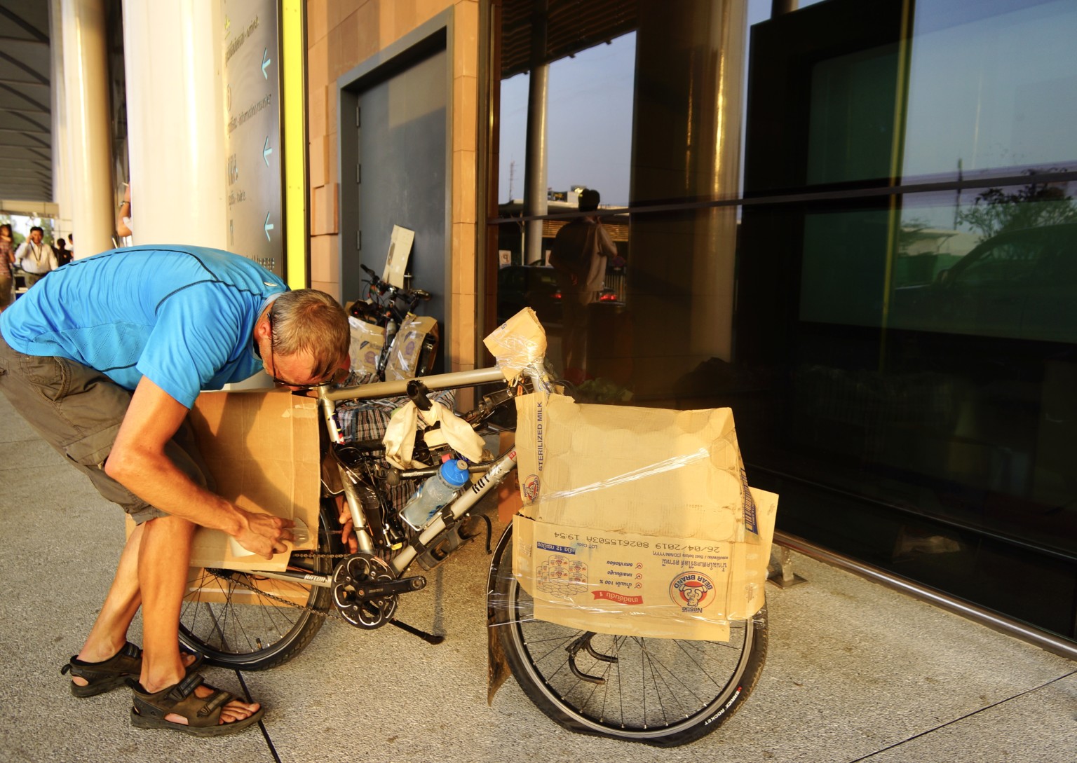 Die Metropole mit 1,7 Millionen Einwohnern präsentiert sich groß und modern, mit vielen Wolkenkratzern und Denkmälern. Der Verkehr nimmt ordentlich zu, Ampeln gibt es kaum, jeder fährt wie er will und wir sind mittendrin statt nur dabei. Doch es ist ein angenehmes Fahren ohne Hupkonzert und Gedrängel. Die Nebenstraßen sind ebenso überfüllt, doch wir kommen immer gut voran, man nimmt Rücksicht auf Radfahrer. Unsere Unterkunft ist ein schmuckes kleines Hotel und hat einen Pool, den wir ausgiebig nutzen. Natürlich besuchen wir den einen oder anderen Trödelmarkt und besorgen uns die Sachen, die wir zum Verpacken der Räder benötigen. Hier ist alles doppelt so teuer wie im Rest des Landes. In den modernen Supermärkten bekommt man französischen Käse genauso wie italienische Nudeln. Zu Preisen, bei denen uns die Ohren schlackern! Bei einem Jahreseinkommen von durchschnittlich 1200 US-Dollar kann sich das kaum einer leisten. Wir nutzen einen freien Tag und besuchen das Völkermord Museum von Choeung Ek mit seinen Killing Fields, sowie das Tuol Sleng Gefängnis in Phnom Penh. Leider ist der Königspalast geschlossen und durch die hohen Mauern sieht man nicht viel. Das Altstadtviertel in der Nähe der Uferpromenade ist voller Hotels und Restaurants. Mit einem kühlen Bierchen lässt es sich am Abend gut aushalten. Die Stadt hat ein gewisses Etwas. Hier finden wir den französischen Kolonialstil. Alte Häuser mit vielen Balkons und vielen Bäumen in den Straßen. Und das Ganze blinkt und leuchtet auf asiatische Art.