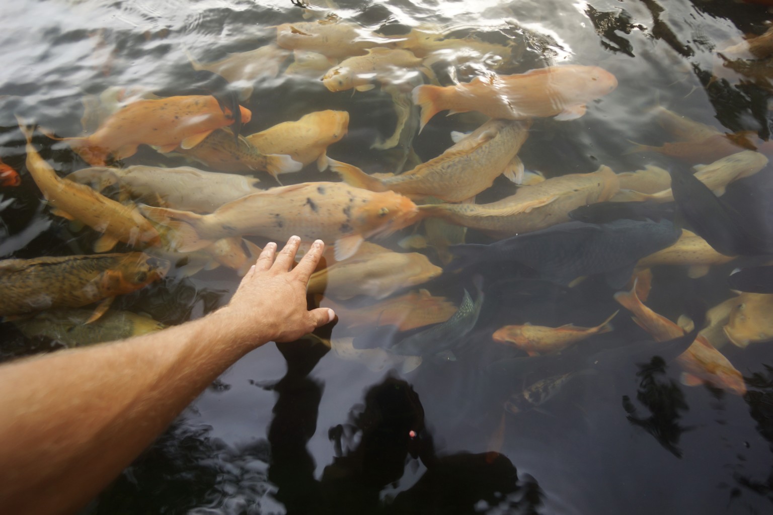 Von Padang Bai legen mehrmals täglich Fähren nach Lombok und auf die Gili Islands ab. Die Hostels sind überfüllt mit Backpackern, die auf die Überfahrt warten. Wir folgen aber nicht dem Menschentrubel und bleiben lieber hier, denn es gibt noch einen weiteren Strand im Örtchen. Die blaue Lagune liegt in einer von Vulkanfelsen umgebenen und üppig bewachsenen Bucht. Toll sieht sie aus, aber der Strand ist etwas schmal und bietet keinen Schatten für uns. Wir bleiben also beim Altbewährtem. Zwei Tage später, wir fühlen uns immer mehr wie im Urlaub, fahren wir weiter. Erstes Zwischenziel: der Virgin Beach. An einer Schranke werden uns ein paar Rupies als Eintritt abgeknöpft, dann haben wir Zutritt. Die Räder bleiben unter Bewachung zurück und wir werfen uns in’s kühle Nass. Ordentliche Wellen bringen die Restaurantbesitzer ins Schwitzen. Es gibt ausreichend Liegen, die wir umsonst benutzen dürfen, wenn wir dort etwas essen. Die Wellen kommen immer näher und überschwemmen unsere Liegen, die dann höher gebracht werden müssen. Nach ein paar Stunden verlassen wir den Ort und fahren weiter nach Tirta Gangga, wo wir den Wasserpalast von Karangasem besuchen. In den Wasserbecken tummeln sich Koikarpfen, balinesische Figuren und bunte Pflanzen zieren diesen tollen Garten..