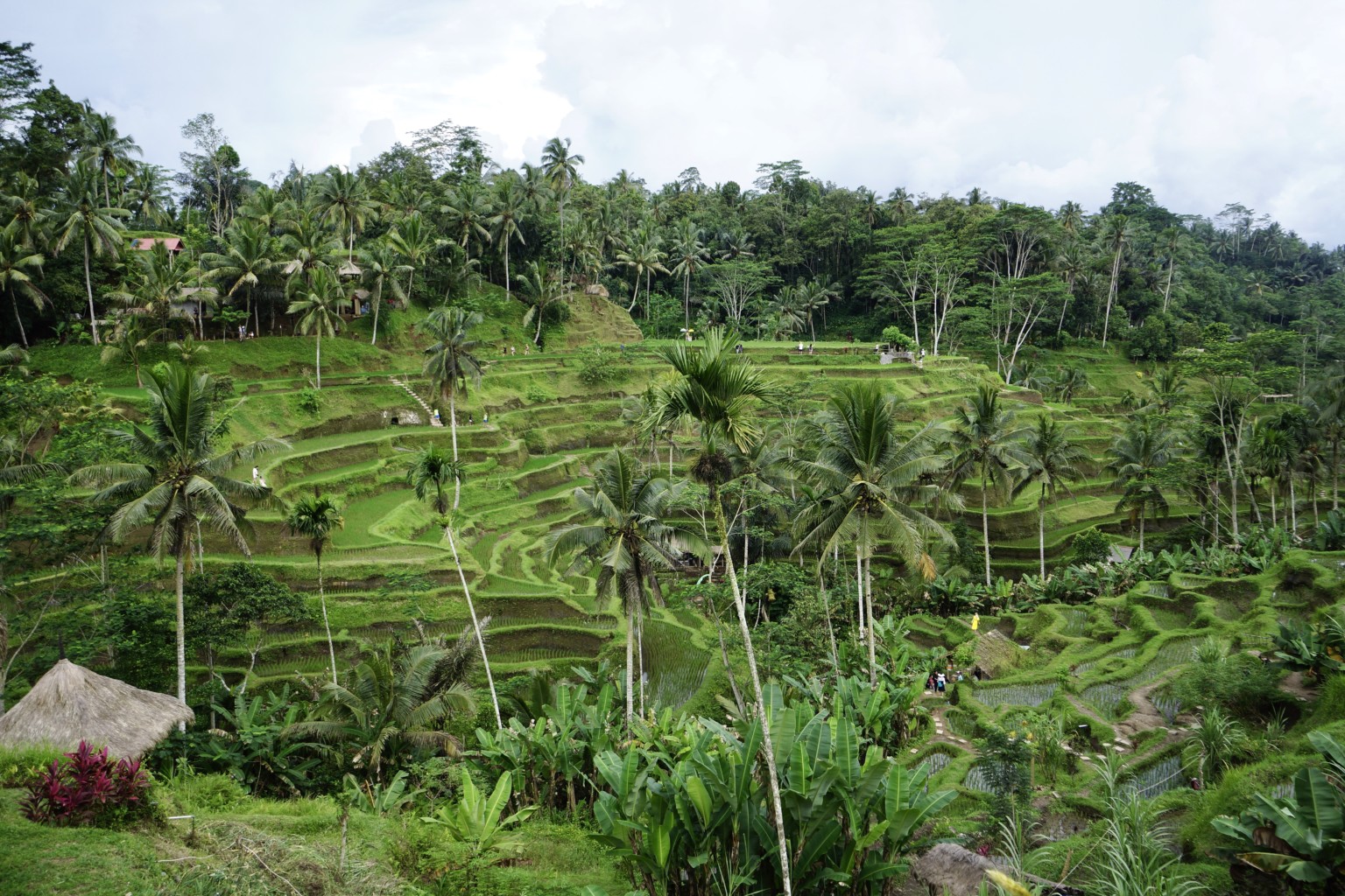 Die letzten Tage hatten es in sich und wir ahnen, was noch auf uns zu kommt. An unserem freien Tag sind wir dennoch aktiv und laufen durch idyllische Reisterassen und an einem Fluss entlang den Campuhan-Wanderweg. Außerdem besuchen wir den Monkey Forrest von Ubud, ein Waldstück, in dem mehrere Affenfamilien leben. Wenn man möchte, kann man Früchte kaufen und die Tiere füttern. Hin und wieder springen Sie einen auf die Schulter, untersuchen neugierig den Inhalt der Taschen oder stehlen (wenn man nicht aufpasst) die Sonnenbrille. Dominic wird von einem in den Kopf gezwackt, zum Glück hatte er eine Mütze auf. Also nichts passiert! Sie sind natürlich die Hauptattraktion, aber die Bäume stehlen ihnen fast die Show. Mehrere sind ineinander gewachsen, so das man nicht weiß, wo ein Baum anfängt oder aufhört. Die Luftwurzeln tragen noch zusätzlich zur Verwirrung bei. Auch ein beliebter Wasserfall in der Nähe steht auf unserem Programm, doch als wir am Vormittag dort ankommen, ist der Parkplatz bereits rappelvoll und es rollen immer mehr Touris an. So machen wir wieder kehrt und relaxen stattdessen lieber an unserem Pool, bei reichlich Bali- Kaffee versteht sich. Es gefällt uns so gut, dass wir noch eine Nacht länger bleiben.
