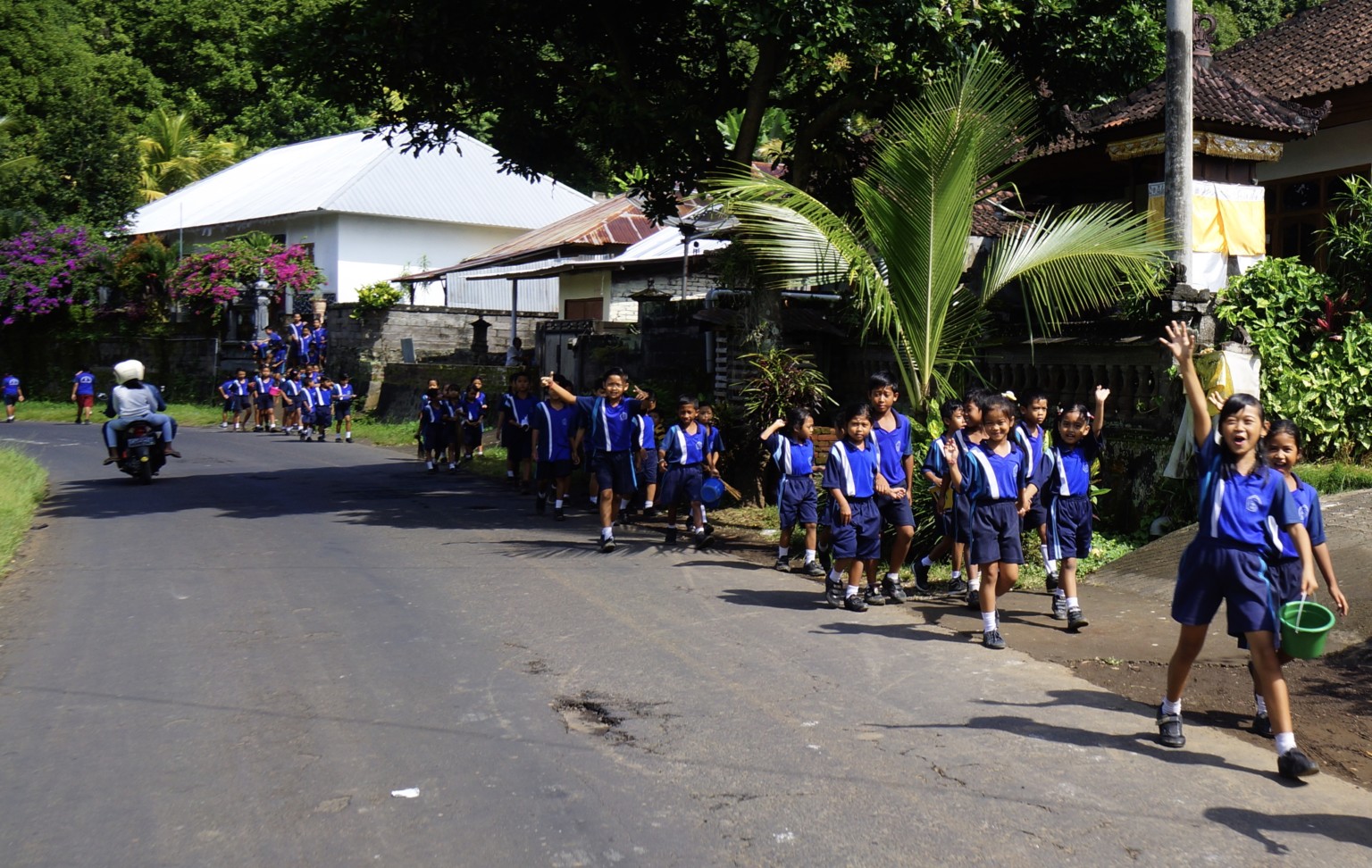 Wir fahren weiter zum Mount Batur, einem Vulkan, der in einem Krater liegt. In den Wäldern duftet es nach Tropenfrüchten und in den Orten nach Essen und Räucherstäbchen, manchmal riecht es auch recht streng nach Müll. An einigen Stellen gibt der Dschungel den Blick auf den höchsten Berg der Insel frei, den über 3000m hohen Vulkan Mount Agung. Es geht auf schmalen Nebenstraßen nur noch steil bergauf, durch kleine Dörfer, die sich auf das balinesische Neujahrsfest vorbereiten. Die Tempel mit ihren vielen Verzierungen werden geschmückt und übergroße gräßliche Fantasiefiguren aus Pappmaché, Ogho Ogho genannt, gebaut und angemalt. Es ist das größte Fest für die Bewohner auf Bali. Am 17. März soll dann die ganze Insel wie ausgestorben sein, niemand darf die Strassen betreten, auch Touristen nicht, der Flughafen ist geschlossen, Strom und Internet werden abgestellt. Sinn des ganzen ist es, sich vor den Heimsuchungen der Geister zu schützen. Wenn die Insel unbeleuchtet und unbewohnt erscheint, ziehen die bösen Geister weiter. Die hinduistischen Balinesen meditieren, fasten und beten an diesem Tag. Eine Religionspolizei in schwarz- weiß karierten Sarongs patroliert durch die Straßen und überwacht das Ganze. Naja, wir werden sehen.