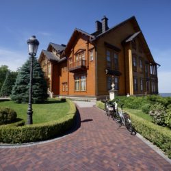 Nach gefühlt 15 Km Tageswanderung machen zurück zum Dorf, welches übrigens auch Heimat vom geflohenen Ex-Präsidenten Janukowytsch war. Dessen Anwesen ist heute ein öffentlicher Park. Er gleicht einem kleinen Freilichtmuseum und zieht die Menschen aus dem ganzen Land an. Mit einem Lkw voller Gold hat er sich damals aus dem Staub gemacht und lebt seitdem im russischen Exil. Seine Hinterlassenschaft ist ein am Dnjepr gelegenes und vom Volk bezahltes Prachtgrundstück. Es ist einige Hektar groß, hat einen Golfplatz, Teiche mit Springbrunnen, Wasserfälle, Pavillons, Gästehäuser… und seine im finnischen Stil gebaute Protzvilla. Das Ganze umgeben von Wald- und Weideflächen soweit das Auge reicht. Für uns unvorstellbar, in welchem Größenwahn dieser Mensch gelebt haben muss.