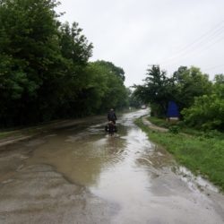 Tags darauf verlassen wir die Region schon wieder und passieren die Grenze zu Moldawien. Auch hier fahren wir nur ein kleines Teilstück (zu unserer Überraschung und dank der Amerikaner) auf perfektem Asphalt. Im Norden des Landes gibt es sehr viele Himbeer- und Weinplantagen und der Handel mit den saftig süßen Dingern scheint zu blühen. An den Straßenrändern werden die roten Beeren palettenweise verschachert und dennoch rauschen wir daran vorbei, denn außerhalb der Ortschaften kann man sie ungehindert für umsonst pflücken. Ansonsten unterscheidet sich der Teil des Landes nicht all zu groß von Transnistrien, außer dass die Anstiege immer knackiger werden. Berg hoch, Berg runter geht es für uns wieder zurück in die Ukraine. Zwei Tage lang fahren wir bei peitschendem Regen durch metertiefe Pfützen bis die Finger aufgeweicht und unsere Schlüppis durch sind. Im kräftigen Wolkenbruch erreichen wir die historische Ortschaft Kamjanez-Podilskyj. Die in einem Nationalpark liegende Stadt ist eine der ältesten des Landes und ein kleines Juwel, wie wir finden. Umhüllt von dichten Wäldern teilt der kleine Fluss Smotrytsch das Örtchen mit bis zu 60m hohen Kalksteinformationen. Die Altstadt mit ihrer Festung erinnert uns an alte tschechische Märchenfilme. Egal in welchem Teil der Stadt man steht, es gibt immer eine fantastische Sicht auf Kathedralen, Kirchen oder das kleine armenische Viertel im Talkessel. Faulenzen, spazieren gehen oder was auch immer, es macht Spaß hier zu sein.