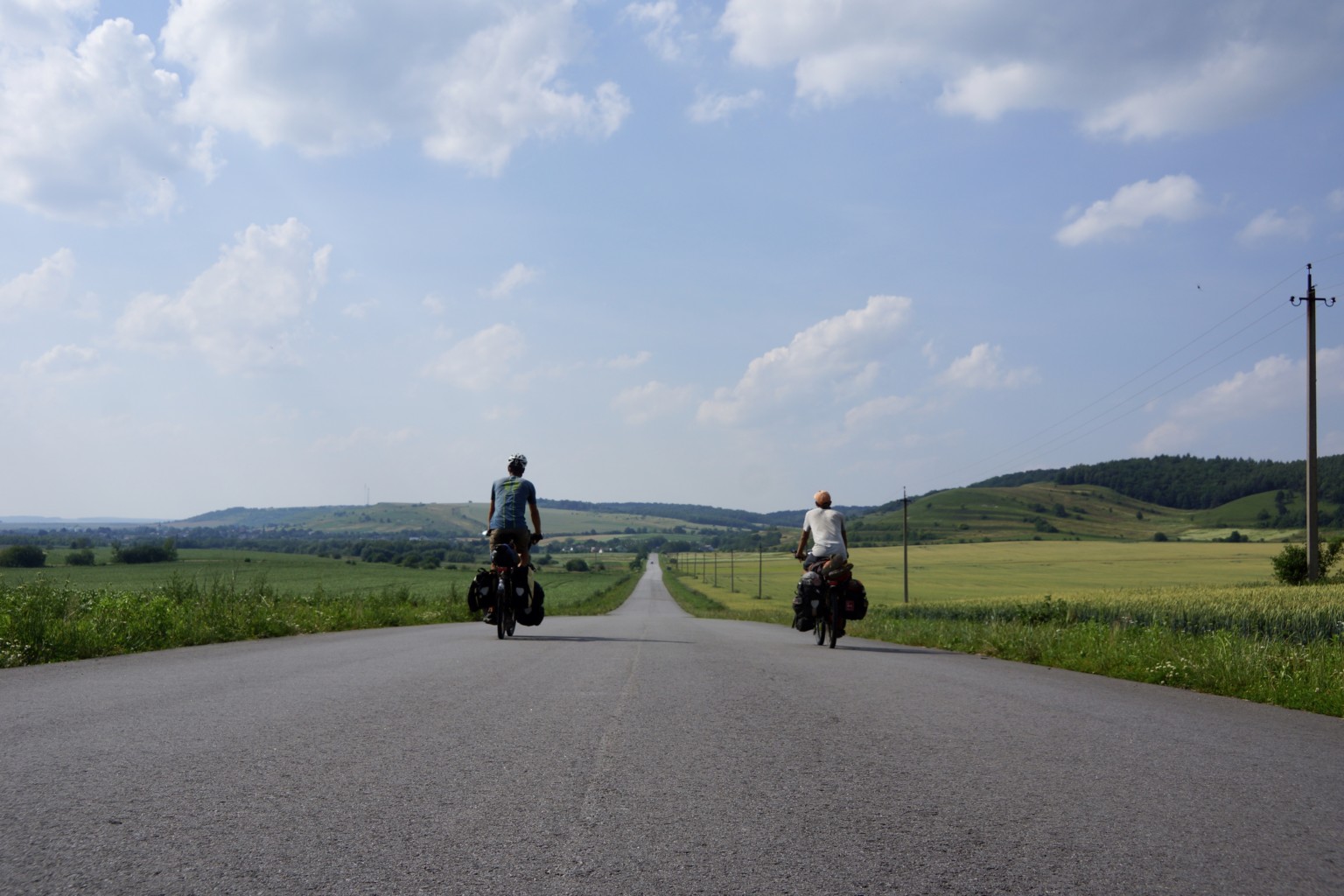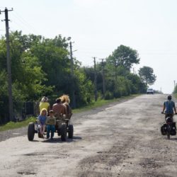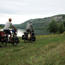 Nach drei Tagen nehmen wir Abschied von Marina und Oksana, und bevor wir unsere Räder Richtung Zielgerade steuern, machen wir noch einen kleinen Schlenker nach Odessa. Aus Kiew heraus noch auf großen, dafür guten Straßen, leider auch mit reichlich Verkehr. Nach einem halben Tag liegt die große Stadt hinter und die Kornkammer der ehemaligen Sowjetrepublik vor uns. Es gibt unglaublich viele Weizen-, Sonnenblumen- und Maisfelder. Verschiedenste Wildkräuter an den Straßenrändern stehen in voller Blüte und leuchten in satten Gelb-, Lila- und Rottönen. Wir durchkreuzen kleine Dörfer oder größere Ortschaften, die uns an unsere Kindheit vor der Wende erinnern. Mancherorts scheint die Zeit stehen geblieben zu sein und die Dörfer wirken wie ausgestorben. Oft sehen wir brachliegende Kolchosen, leerstehende Häuser oder alte Fabriken, die dem Verfall trotzen. Alte Fahrzeuge wie der Lada, Moskwitsch oder Wolga, die vermutlich schon 30 Jahre oder mehr auf dem Buckel haben, sind auf den Holperstraßen keine Seltenheit.