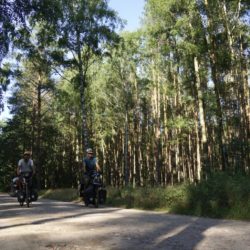 Nach einem zweitägigen Zwischenstopp radeln wir weiter. Der R1 Radweg, welcher London mit Warschau verbindet, soll uns nun die letzten Kilometer durch Polen führen. Über Kopfsteinpflaster geht es durch urige Dörfer, die vom Geldregen noch nix abbekommen und dadurch ihren Charme behalten haben. Es geht auf Feldwegen entlang durch große duftende Wälder mit einigen Sand- und Schiebepassagen. Leider regnet es immer wieder, doch die Plätze die wir zum Zelten finden, entschädigen dafür. Die vielen Seen der dünn besiedelten Region bieten mit ihren tollen Sonnenuntergängen ein ruhiges Plätzchen. An den Regen ab und zu haben wir uns schon gewöhnt, doch es soll ja besser werden.